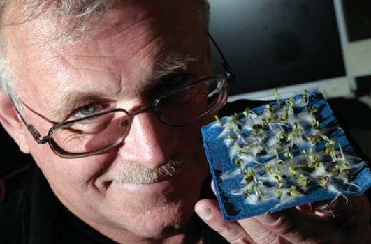 Professor John Hampton's career in seed-based agricultural research spans 48 years. Pictured here in 2007, he is holding turnip seedlings from a germination test that was part of revolutionary research to develop “smart seeds” for forage and vegetable brassica crops that would be capable of naturally resisting pests and diseases without genetic modification or chemical interference.